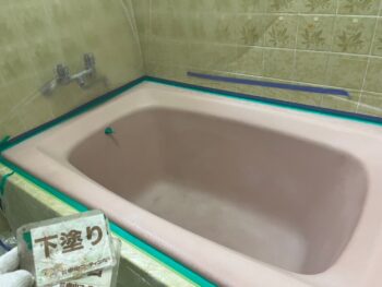 浴槽下塗り塗装を行います。