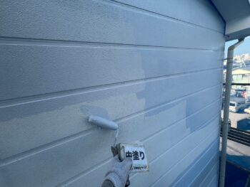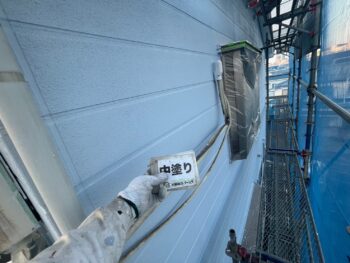 外壁中塗り塗装を行います。