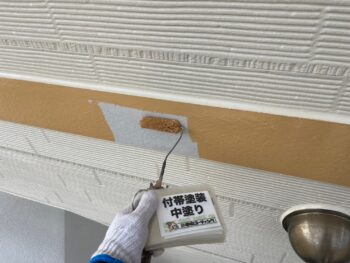 軒天井上塗り塗装を行います。