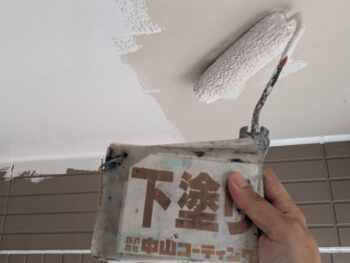 軒天井下塗り塗装を行います。