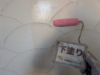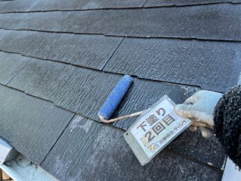 下塗り塗料の吸い込みがある場合は下塗り2回目を行います。