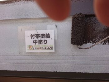 シャッターBOX下塗り塗装を行います。