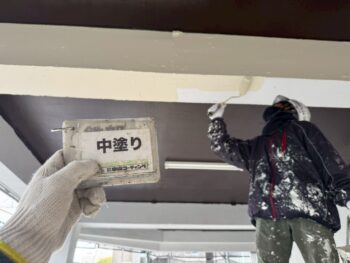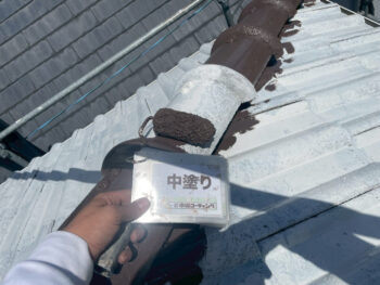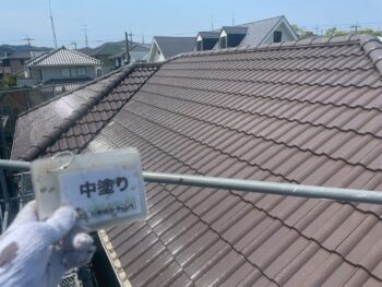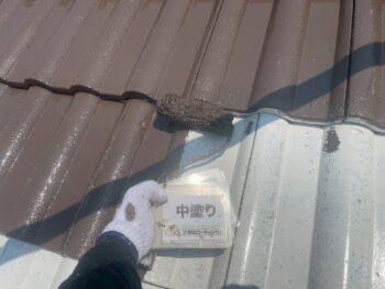 屋根中塗り塗装を行います。