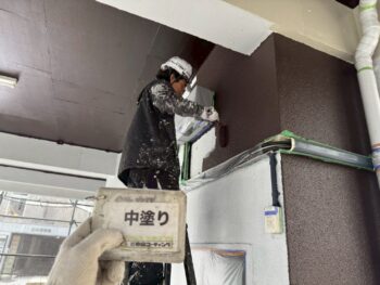 外壁中塗り塗装を行います。