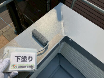 屋根棟板金下塗り塗装を行います。