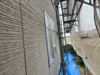 N様邸では塗装前のビニール養生作業を行いました。