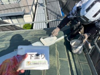 屋根下塗り塗装を行います。