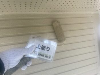 軒天井上塗り塗装を行います。