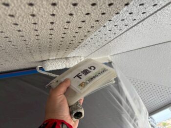 軒天井下塗り塗装を行います。