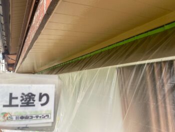 軒天井上塗り塗装を行います。