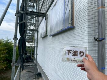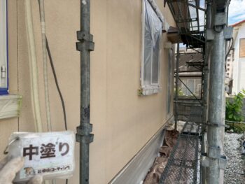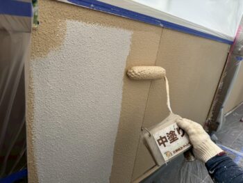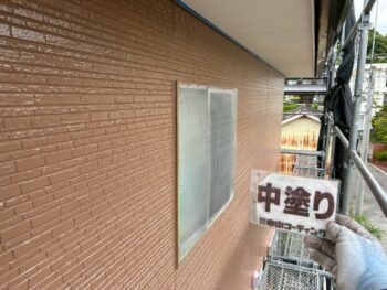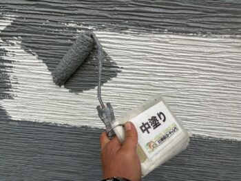 外壁中塗り塗装を行います。