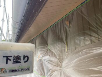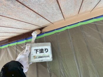 軒天井下塗り塗装を行います。