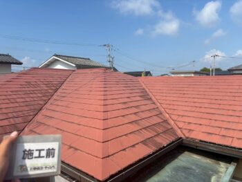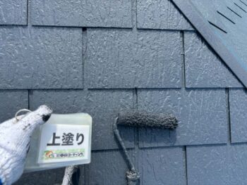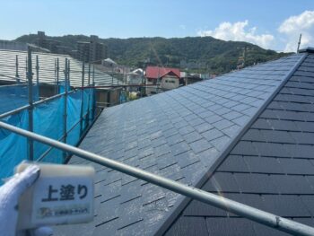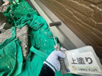 屋根の上塗り塗装と古いコーキングの撤去を行いました。