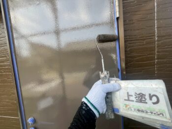K様邸ではシャッターBOX・土台水切り・勝手口ドアといった付帯部の塗装を実施。