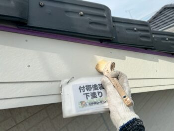 破風鼻隠し下塗り塗装を行います。