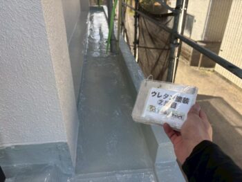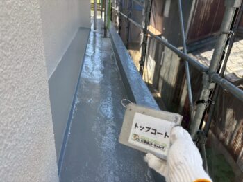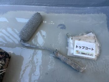 ウレタン塗膜2層目を施工後、仕上げにトップコートを塗布。