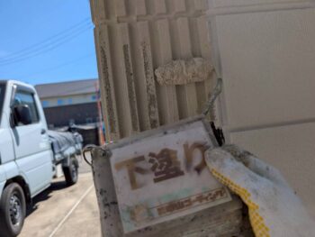 塀下塗り塗装を行います。