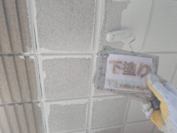 軒天井下塗り塗装を行います。