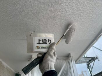 軒天井上塗り塗装を行います。