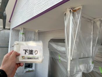 外壁の下塗りを行い、しっかりと下地を整えました。塗装は下地づくりが命。