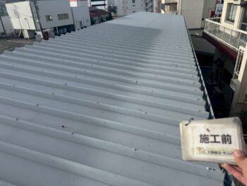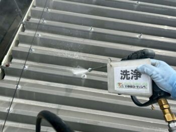 三谷第一ビル様では駐車場屋根洗浄作業を行いました。