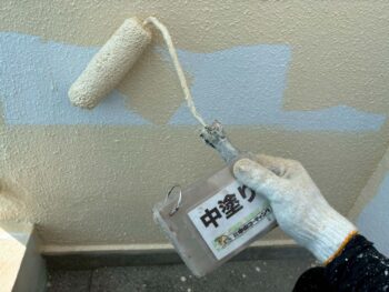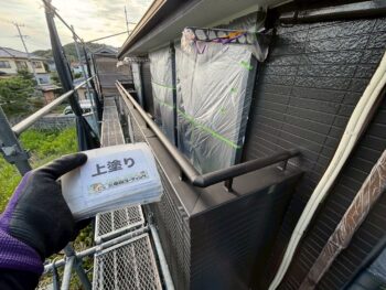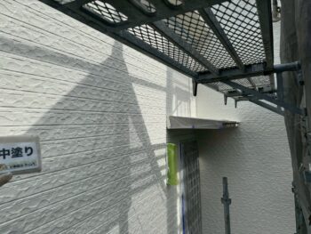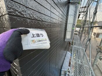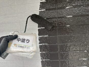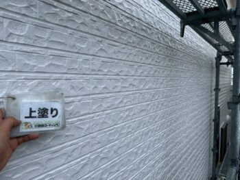 外壁の中塗り・上塗りを重ね、塗膜の耐久性を確保しています。