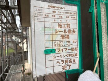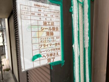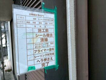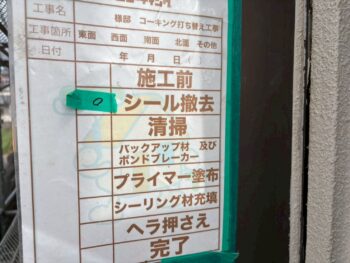 劣化したコーキングを撤去後、プライマー塗布・新規充填を行いました。