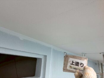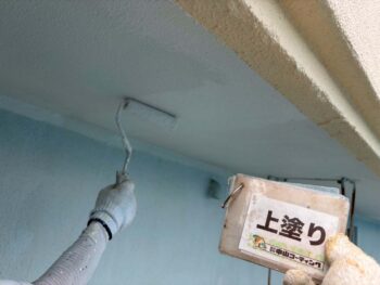 軒天井上塗り塗装を行います。