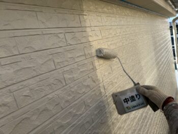 外壁中塗り塗装を行います。