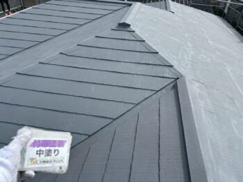 屋根中塗り塗装を行います。