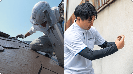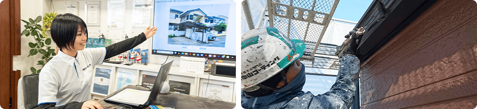 専門家が診断結果とご要望に基づき、工法を限定せずカバー工法やサイディングなどから最適な工法をご提案します。また、代表自らが最適な塗料、外装材を厳選しています。