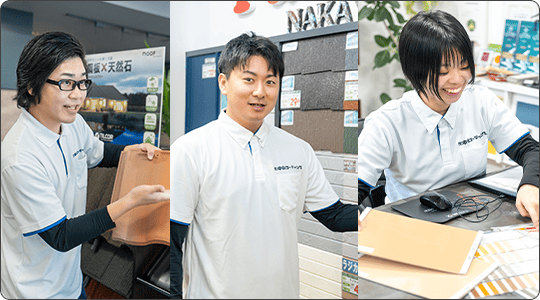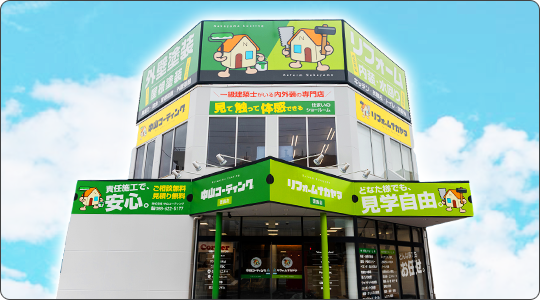 徳島県内に徳島店・阿南店・吉野川店と3店舗展開しています。徳島店は各塗料や建材、水まわり商品も見て触って比較できる体感型ショールームです。重要なご説明は、実際の塗料サンプルなどを見ながら必ず対面で丁寧に行っております。