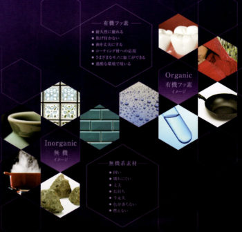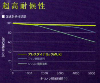 「無機」の強靭さと「有機」の柔軟性、そしてフッソレジンの素材の保護機能を高効率で配合させることで優れた耐候性を発揮します。
