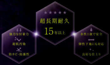 ハイブリットテクノロジーとラジカル抑制技術の高耐侯機能とダイナミックレジン結合技術の優れた付着力により、塗膜の耐久性を最大限へと導きます。