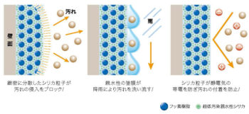 ナノコンポジットFはセルフクリーニング機能により汚れの付着を防ぎます。
