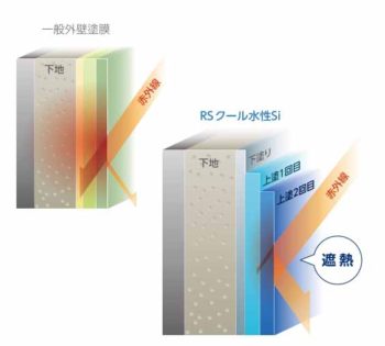 紫外線を効率よく反射し、外壁の塗膜表面温度を抑制できる遮熱性能にこだわった塗料です。