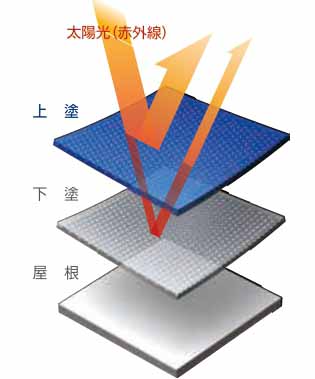 上塗り塗料を通過した一部の赤外線も下塗り塗料でしっかりブロックします。