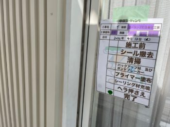 窓まわりなど水の浸入口になる箇所はコーキング充填作業を行います。