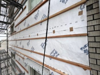 透湿防水シートを・木下地を取付します。