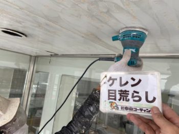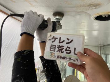 ケレン作業とは電気工具のサンダーやマジックロン・サンドペーパー(ヤスリ)などを使用し錆や古い塗膜・汚れを落とし凸凹の表面を平らにしていく作業です。
