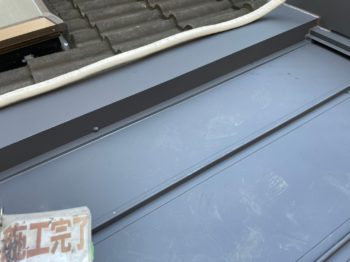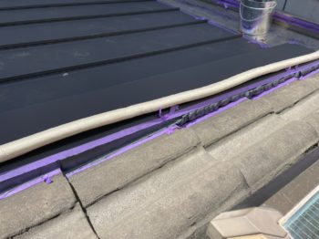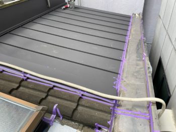 新しい屋根材(ガルバリウム鋼板)を取付けします。