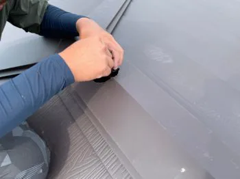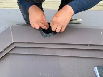 断面部分に専用のテープを貼ります。(伸縮性プチルテープ)