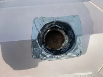 屋根棟に穴を開けます。