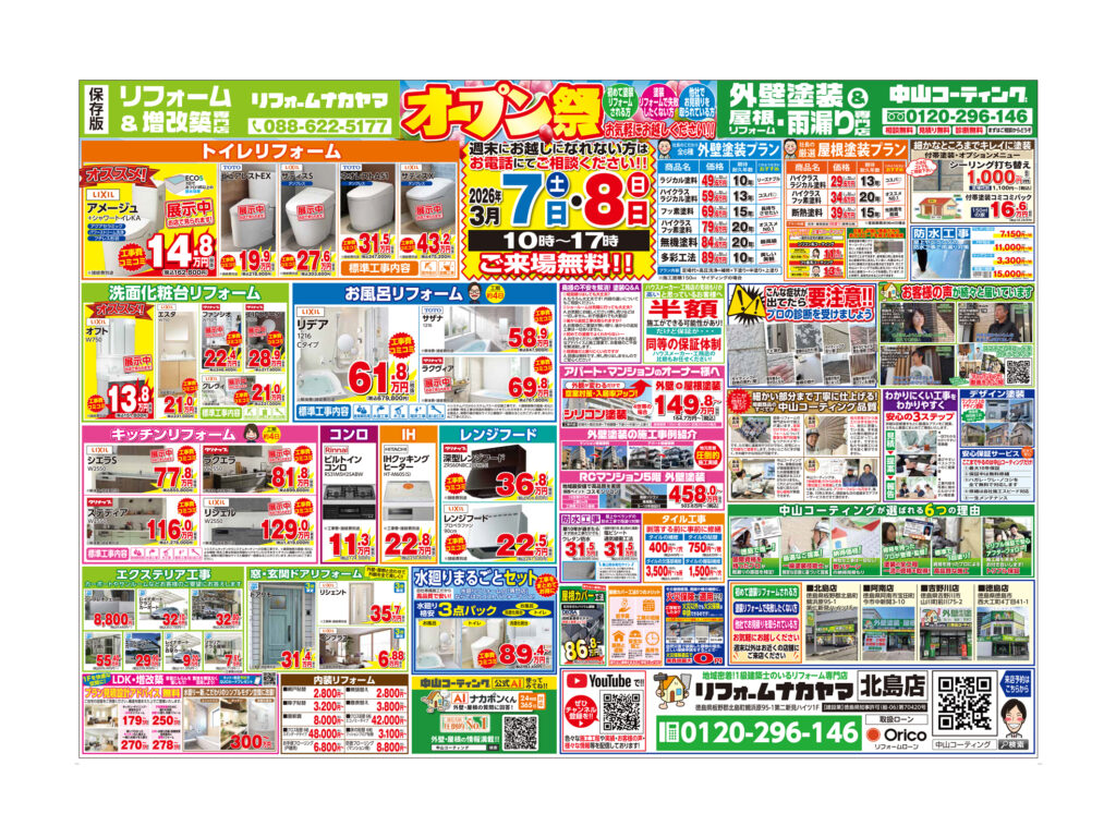 - 3月7日(土)8日(日)10時~ (会場:リフォームナカヤマ 北島店) 詳しくはこちら >