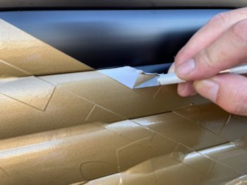 その後、数回に分けてゴールド塗料を吹き付けます。