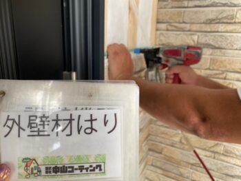 透湿防水シートを張り終えた後、胴縁を取り付けていきます。