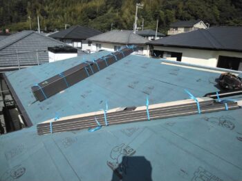 屋根にも透湿防水シートではなくアスファルトルーフィングを張っていきます。