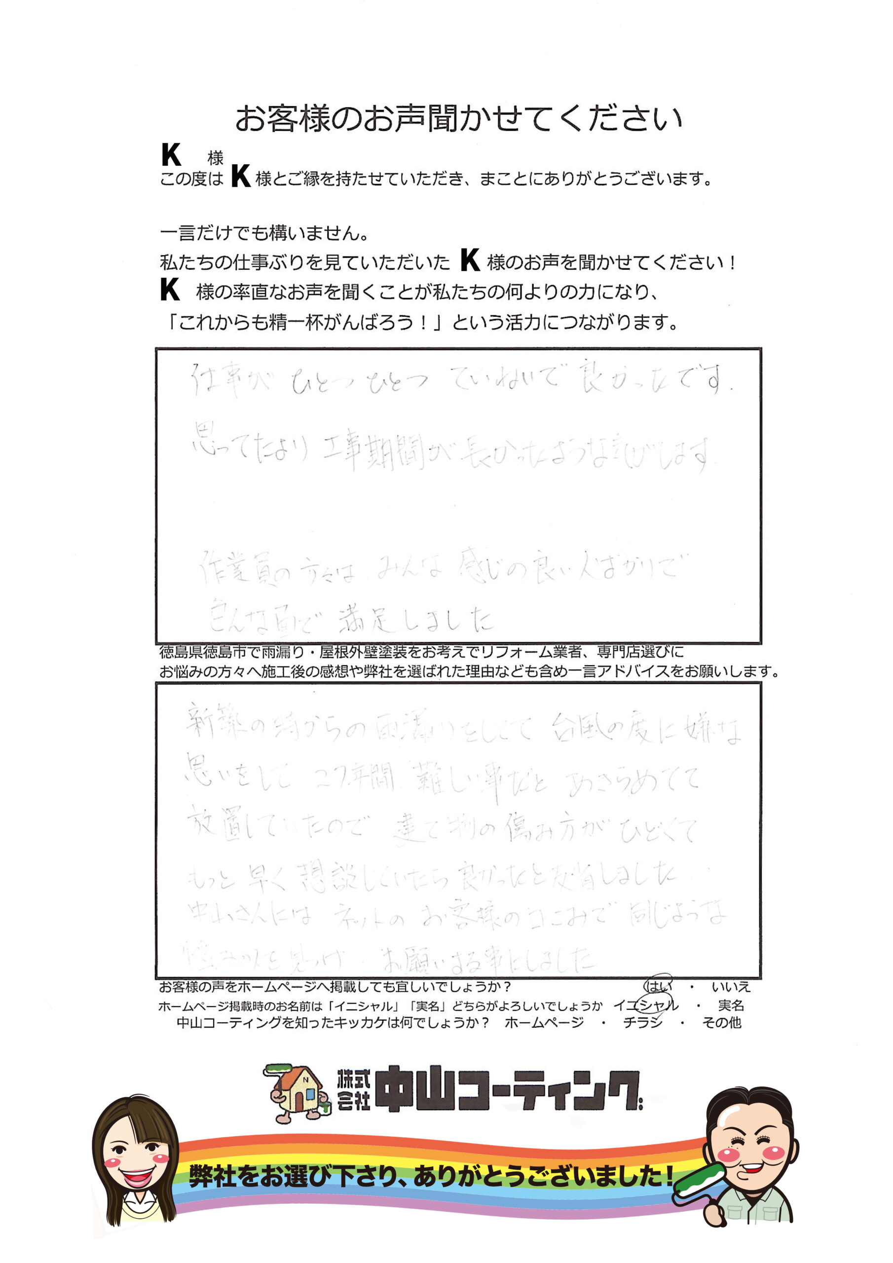 私たちの仕事ぶりを見ていただいたK様のお声をお聞かせください!
