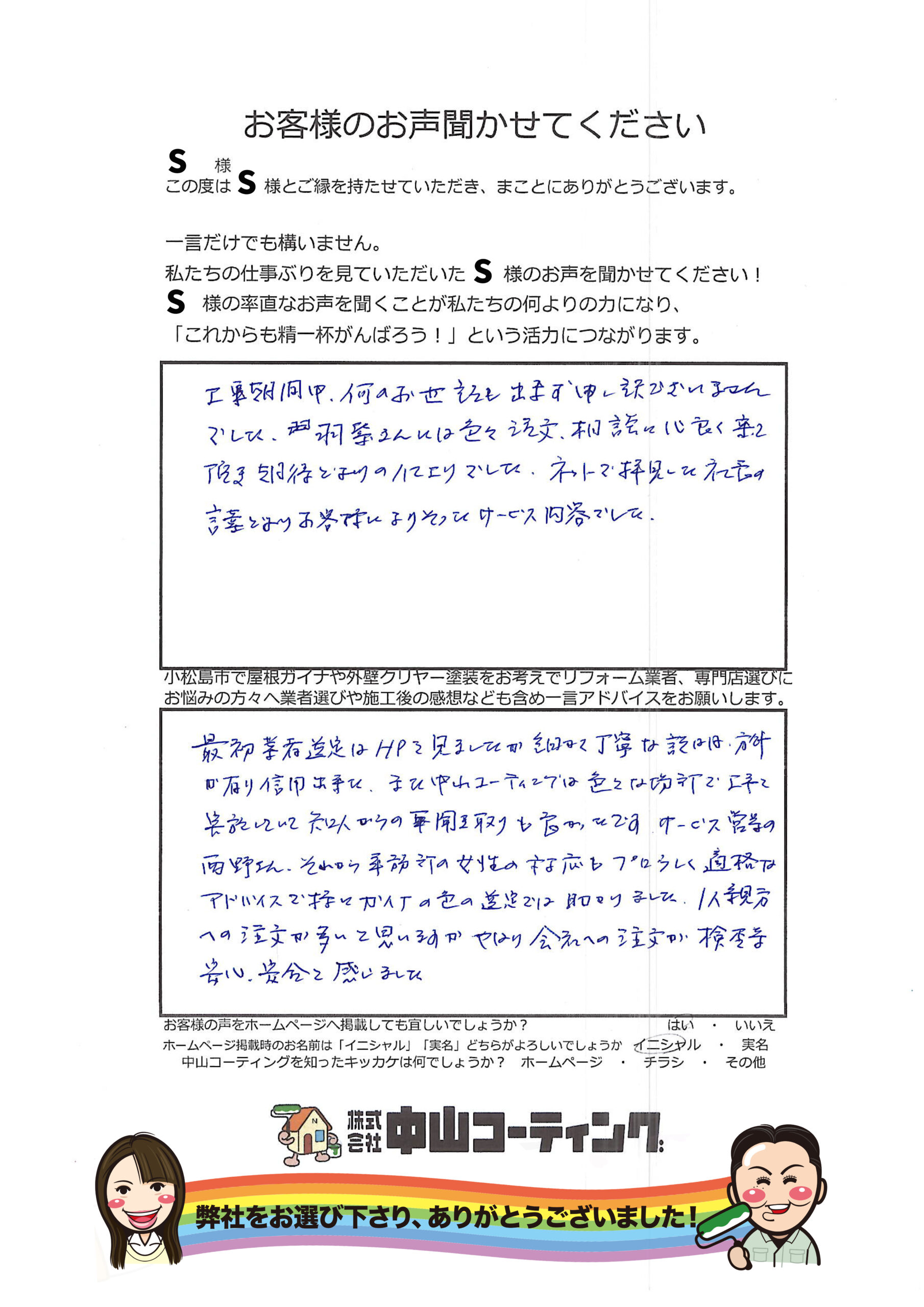 私たちの仕事ぶりを見ていただいたS様のお声をお聞かせください!