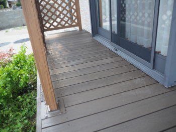 | ご提案内容 | 風合いを変えずにクリヤー塗装をご提案させて頂き施工完了しました。 後打ちのコーキング材は耐久性抜群なイクシード・TF-2000を使用しております。 |